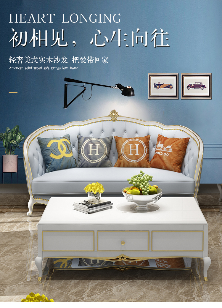 | 商品名称 | シャリスのソファーアメリカーノの軽い高級な実木ソファ欧式説明金別荘の後、現代の簡単ヨーロッパの小さい豪華な本革ソファの客間セットのシングル席 |