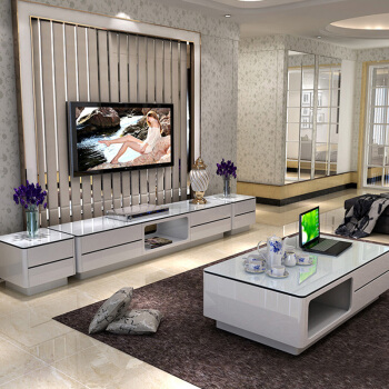 夏瑞斯茶几钢化ガラス焼き付けテレビキャビネット客間現代家具テレビキャビネット茶の組み合わせセット