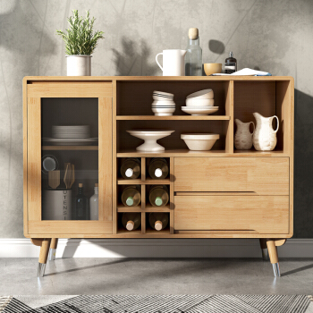 梵宜北欧の軽奢な食事の辺のキャビネットの実の木の食器棚のレストランの戸棚の逸品の家具の白色+原木の色の食事の辺のキャビネット【ピクチャーの価格のブランドのオファー】-京東