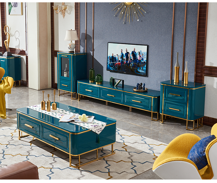| 商品名称 | パバルサ客間の茶何テレビの店の角のいくつかの酒屋の組合せの後で近代的で簡単にステンレスのチタンの香港式の軽奢な茶何式の贅沢な客間の家具140 CM*80 CM*43 CMの茶何 |